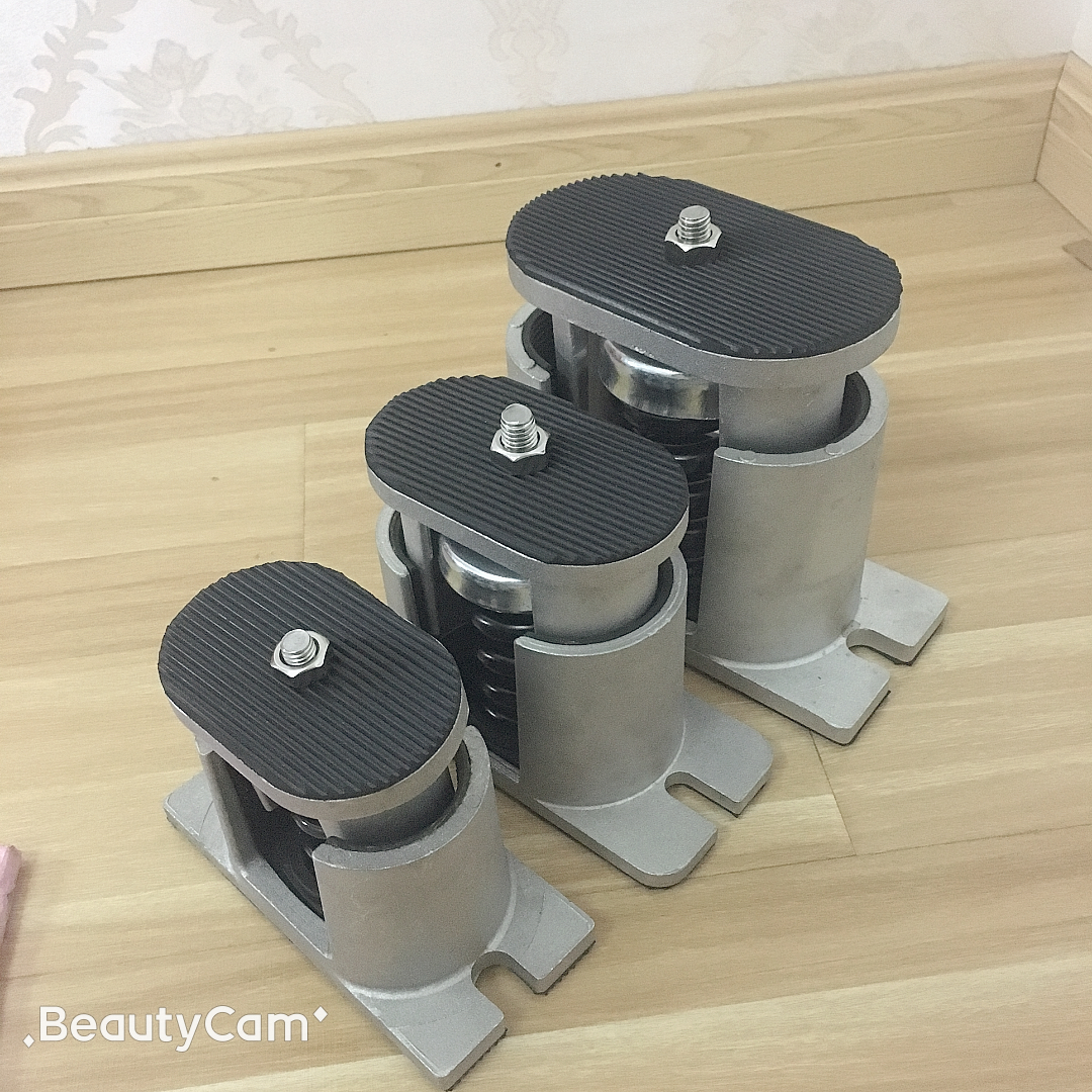 JB型弹簧减振器具有安装方便等特点,减振器上下端各有螺丝及螺丝孔,弹簧上端有高度调节螺母,可根据安装需要自由调整高度,减振器两端有侧向橡胶阻尼,加大了垂向的阻尼系数,提高了纵向和横向的刚度,确保设备能更安全的运行。